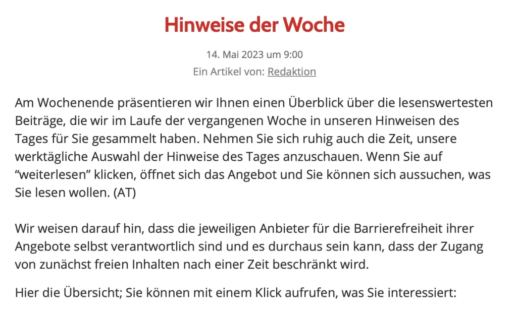 Hinweise der Woche